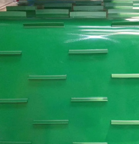Flighted belts feature high-frequency welded flights on the belt surface, available up to 2.000m wide.